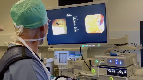 Le Spyglass permet d’examiner les voies biliaires et pancréatiques avec précision, mais également de pratiquer des prélèvements ciblés permettant d’orienter le praticien vers un diagnostic très précis. Cet instrument est utilisé pour différentes indications telles que la caractérisation des tumeurs, l’identification de sténoses ou le retrait de calculs. « Dans le cas de la procédure pratiquée à la Clinique Belharra, j’ai utilisé un Spyglass inséré dans un duodénoscope et j’ai repéré le calcul du canal pancréatique. Je l’ai attrapé avec un panier et je l’ai extrait du canal pancréatique. Cette intervention est assez exceptionnelle », souligne le gastro-entérologue.