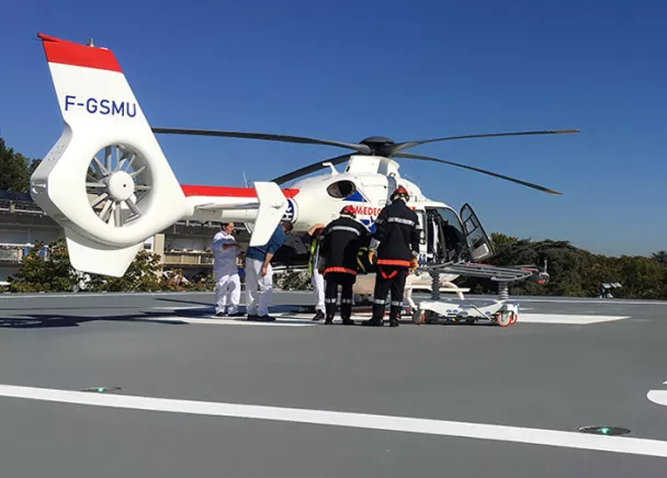 L’hélistation constitue également un atout majeur pour la région, dont la géographie complexe se prête totalement au transport par hélicoptère. « La carte de Lyon et du territoire rendait nécessaire la création de cette hélistation, explique le Dr Sibellas. En effet, la ville est traversée par un fleuve et une rivière mais est aussi ponctuée de collines. Le trajet pour accéder à l’établissement peut se faire via des tunnels et le moindre risque d’accident et donc de saturation du trafic peut être fatal pour le patient. » Chaque semaine, deux à trois patients sont déposés par l’hélicoptère du Samu ou de la Sécurité civile.