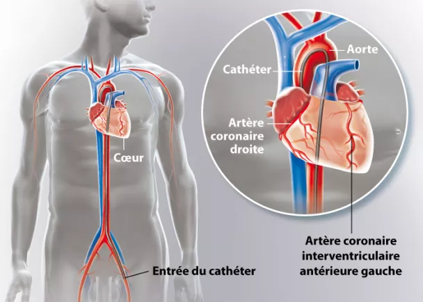 La coronarographie est la radiographie des artères coronaires ; c’est un examen « invasif », c’est-à-dire nécessitant la ponction d’une artère. Il est réalisé dans des services spécialisés. Il permet d’affirmer la maladie coronaire et, souvent, de traiter les rétrécissements observés.
