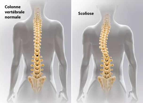 Survenant surtout dans l’enfance et l’adolescence, la scoliose est une déformation permanente de la colonne vertébrale, liée à une rotation des vertèbres. Elle provoque une modification des courbures naturelles de la colonne vertébrale ainsi qu’une gibbosité, c’est-à-dire une déformation du haut du dos en forme de bosse.