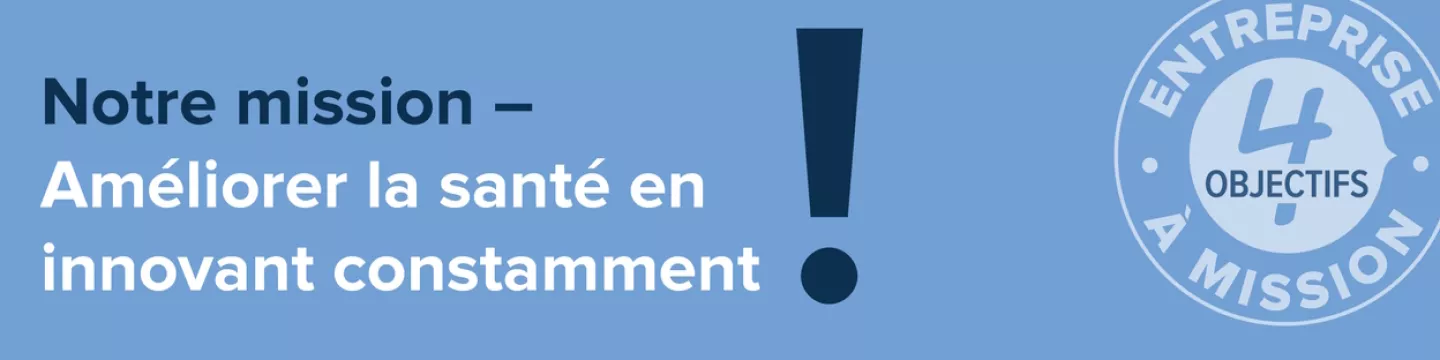 En 2022, en modifiant ses statuts pour devenir une entreprise à mission, notre Groupe a pris l’engagement de placer l’intérêt général au cœur de ses actions quotidiennes et d’inscrire son développement dans un cadre qui renforce notre responsabilité vis-à-vis de tous : patients, collaborateurs, praticiens, planète, société. Désormais, notre mission et notre raison d’être « Améliorer la santé en innovant constamment » reposent sur 4 objectifs fondamentaux, sociaux et environnementaux.