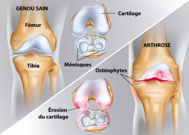 Certains facteurs de risque favorisent le développement de l'arthrose du genou :