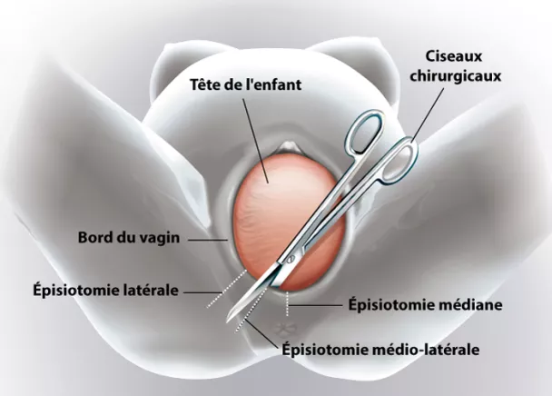 L’épisiotomie, effectuée par la sage-femme, consiste à inciser le périnée au cours de l’accouchement pour faciliter la sortie du bébé. Elle est pratiquée dans des situations particulières, notamment quand la sortie du bébé risque de provoquer des déchirures du périnée. Une incision bien nette, facile à recoudre, est donc préférable.