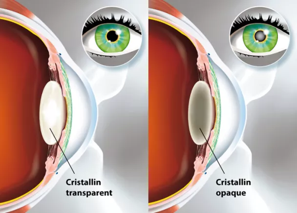 Mon ophtalmologiste m’annonce que j’ai une cataracte. C’est l’opacification du cristallin, lentille naturelle de l’œil. La cataracte entraîne une diminution, le plus souvent progressive, de l’acuité visuelle.
